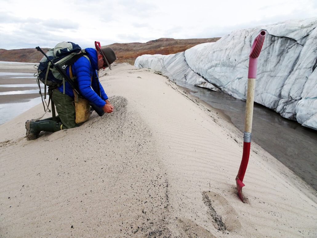 Adam Garde har hjulpet med at undersøge mineralkorn, som man mener, at Hiawatha-gletsjeren har båret med sig inde fra overfladen af Hiawatha-krateret. Gletsjere virker nemlig som store samlebånd, der trækker enorme mængder sten, grus og sand med sig langs bunden. Det materiale skylles ud fra gletsjeren med smeltevand eller blottes, når gletsjeren trækker sig tilbage. På den måde kan man sige, at gletsjeren har indsamlet prøver fra krateret og taget dem med ud til forskerne.