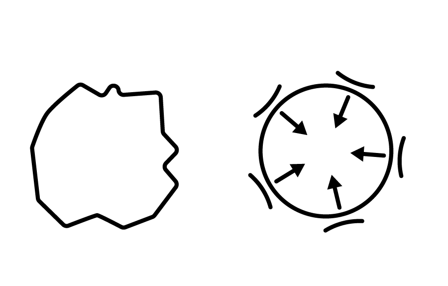 En planet er først en rigtig planet, når dens masse er så stor, at tyngdekraften overvinder planet-materialets stivhed. Således at tyngdekraften simpelthen er stor nok til at trække materialet – sten eller gas – indad, så planeten bliver rund. Det kaldes hydrostatisk ligevægt. Inden da er den en protoplanet, hvis overflade kan være mere uregel-mæssig.