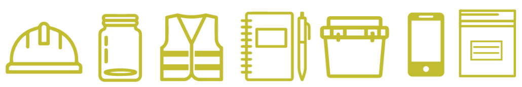 Antons arbejdsudstyr afhænger meget af, hvilken type prøvetagning der skal laves, men nogle ting går rigtig tit igen. F.eks. skal han ofte have sikkerhedsudstyr, såsom HJELM og VEST, på. Derudover skal han stort set altid bruge POSER, GLAS eller andre BEHOLDERE til prøverne og mærkater til prøvetagning, BOKSE til opbevaring af prøver og en BOREJOURNAL. Og så har han altid sin TELEFON på sig. Ikke kun, fordi han skal koordinere boringer med kolleger på kontoret og på lokaliteten, men fordi han skal dokumentere arbejdet med fotos.