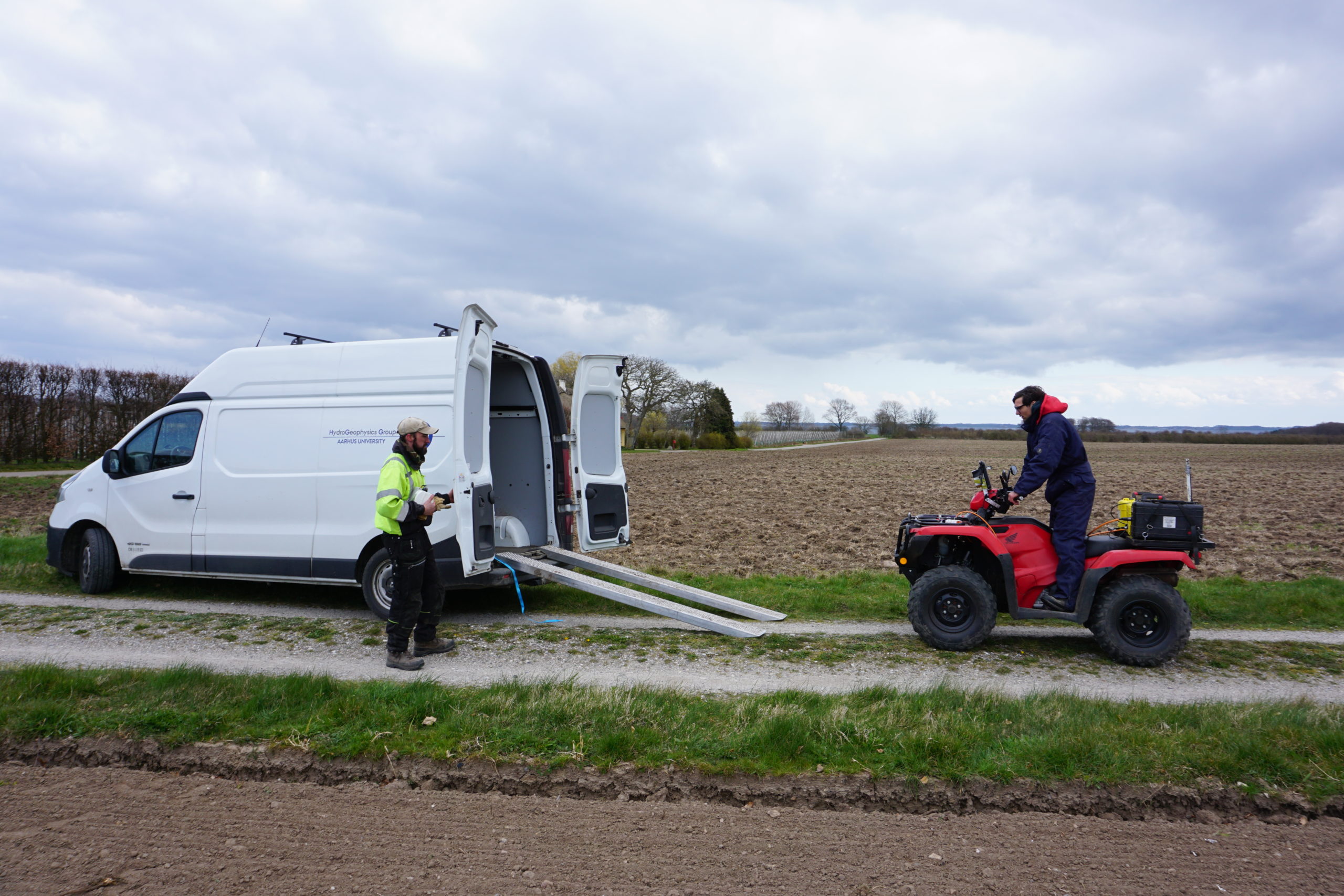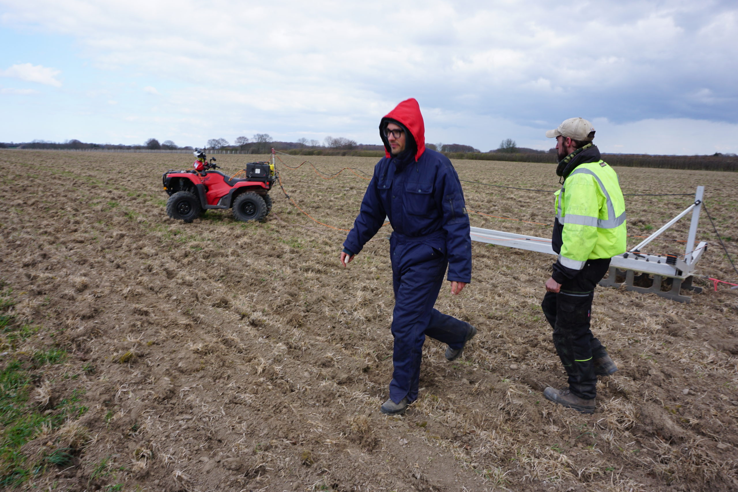Kold vind og tiltagende forårssol kæmper om magten over de nysåede marker på Sydfyn, da freden pludselig forstyrres af motorlarm fra en rød ATV-motorcykel, der dukker op bag et læhegn. ATV’en har en særpræget anordning spændt efter sig, som bumler af sted hen over den ujævne, nypløjede jord. I sadlen sidder Rune Kraghede, videnskabelig assistent fra Aarhus Universitets Hydrogeofysiske Gruppe (HGG). I dag er sidste dag i en lang feltsæson med kortlægning af den danske overfladenære undergrund.
