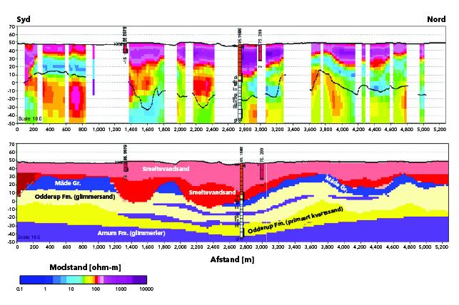 Den metode er god til den mere overordnede kortlægning af, hvilke lag der cirka er hvor i jorden. Det er blandt andet godt, når man skal kortlægge grundvandsmagasiner i større skala, forklarer han.