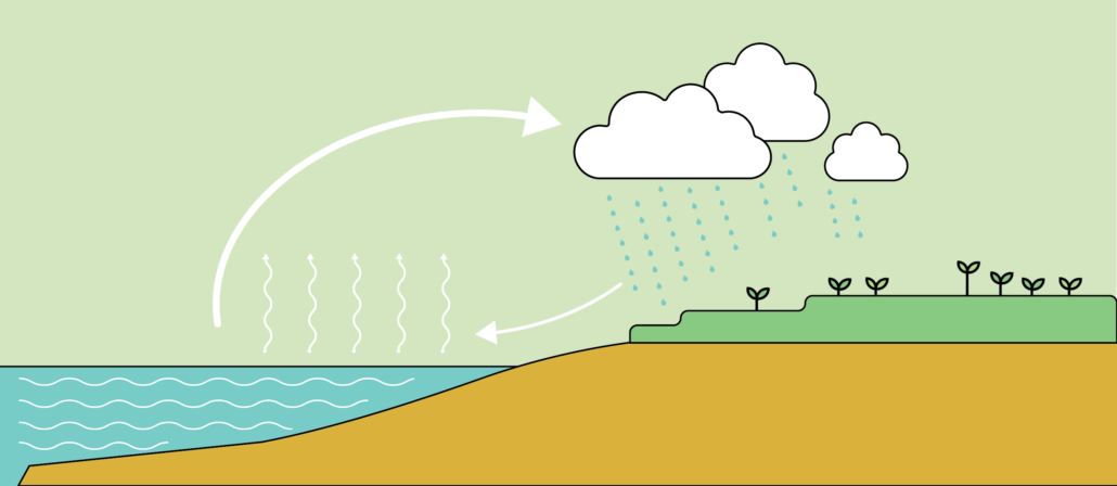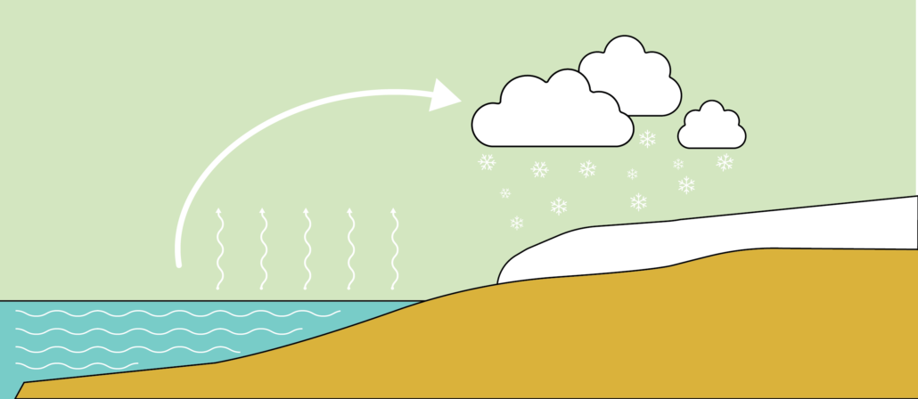 Årsagen er relateret til fordampning, nedbør og isdannelse, og processerne ses her: