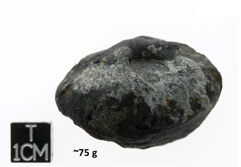 Måske ville du ikke tænke ’meteornedslag’, hvis du fandt et hul i taget på dit sommerhus- anneks. Måske ikke engang, selvom der også lå en lille mørk sten indenfor på gulvet. Manden med sommerhus-annekset i Dueodde på Bornholm smed da også bare stenen ud. Men hans kone mente, at den skulle sendes til København og undersøges, og så kunne en ekspert fra Statens Naturhistoriske Museum fortælle dem begge, at det VAR en meteorit. Det vides ikke, præcis hvornår den er faldet ned, men den blev fundet og vurderet i 2017. Man mener, at den faldt et par år tidligere. Den vejer 75 gram.