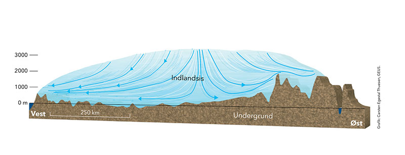 Indlandsisen i Grønland er verdens næststørste ismasse, kun overgået af Antarktis. Isen i sig selv kan være mange tusind år gammel, og der kommer hele tiden ny is til.