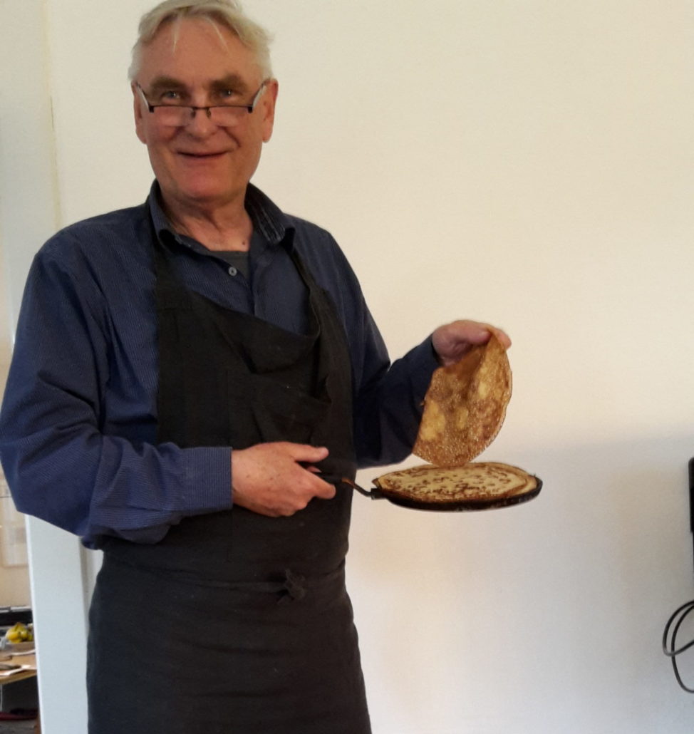 ”Det tager to minutter at bage en pandekage, og i ventetiden beder jeg folk om at love, at de vil kræve rent drikkevand,” siger han.
