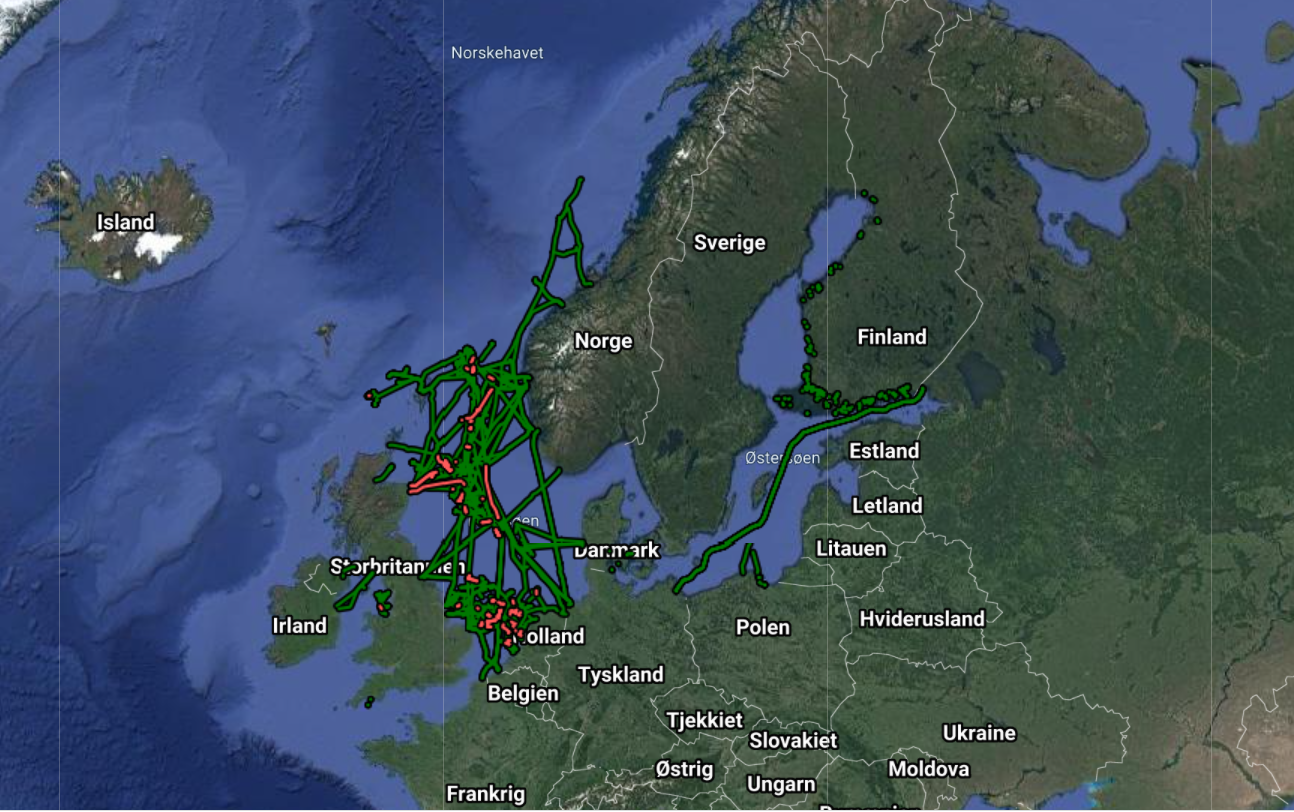 EU har et stort projekt kørende med fokus på at få kortlagt og samlet data for de europæiske have, kaldet European Marine Observation and Data Network (EMODnet). På hjemmesiden kan du finde data på et væld af interessante ting, selvfølgelig geologiske kortlægninger, men også kort over menneskelige aktiviteter som havbrug, råstofindvinding m.m. eller rørledninger, som ses på eksemplet herover. Du kan også se et kort over de europæiske havhabitattyper.