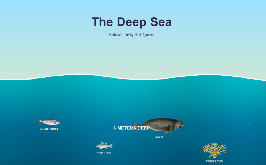 Denne her side er simpelthen genialt lavet. Du starter med at se havoverfladen, og så scroller du ellers bare nedad og nedad og nedad. Indtil du til sidst rammer bunden ved 10.924 meters dybde på bunden af Marianergravens dybeste punkt, kaldet Challengerdybet.