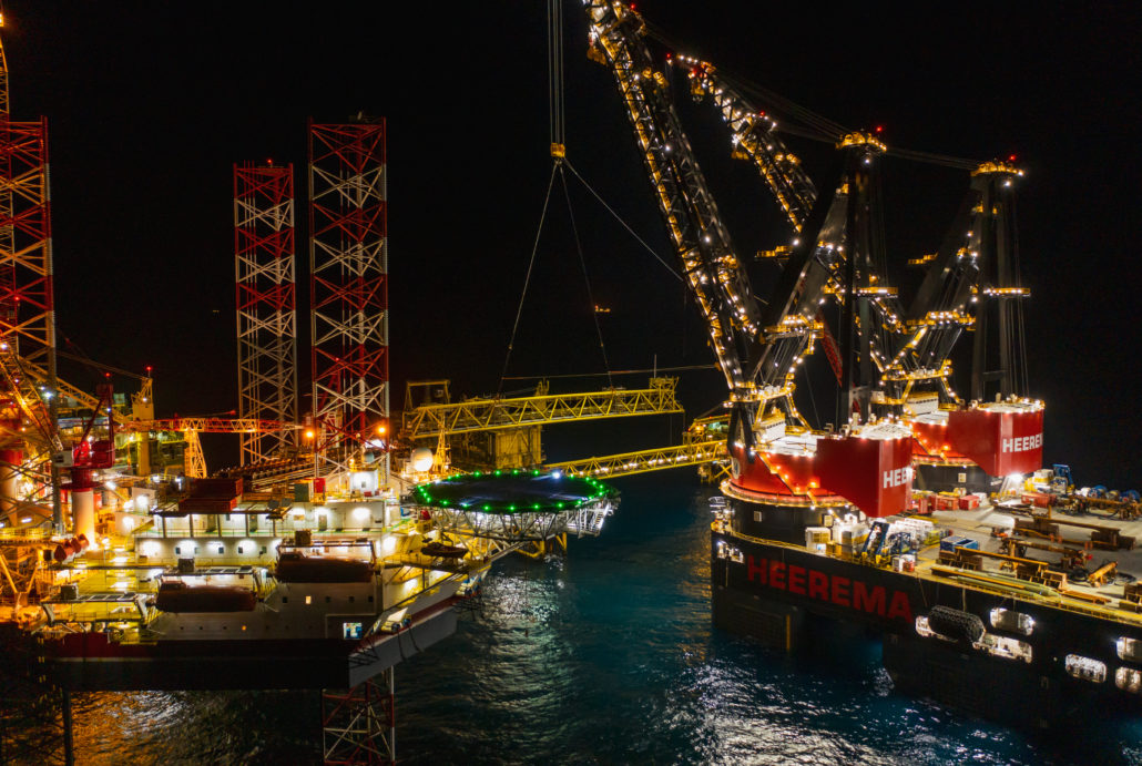 Det var lidt af et syn, der kunne møde en, hvis man befandt sig til søs ved Tyra-gasfeltet i Nordsøen i starten af oktober 2022. Heldigvis findes der billeder af det til os, der ikke gjorde. Her ankom den nye 17.000 tons tunge, nye produktionsplatform til Tyra-gasfeltet stående på dækket af et gigantisk transportskib, der havde sejlet hele vejen fra Indonesien. Platformen blev derpå løftet på plads i ét stykke af verdens største kranskib Sleipnir, hvilket udover at indvarsle sidste strækning i den årelange genopbygning af gasfeltet også indbragte verdensrekorden for tungeste løft nogensinde til havs. (Se fotos herunder fra processen)