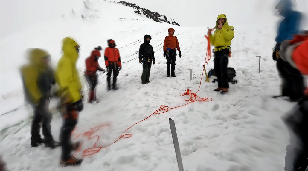 Kursets første og anden dag forløber med vellykkede, kontrollerede redningsøvelser uden det store drama, men det ændrer sig lidt på kursets sidste dag. Her bliver minimum seks ud af tolv deltagere undervejs dømt ”døde” af guiderne, nogle op til flere gange. Enten fordi vores rebmakker på det risikable tomands-rebhold ikke når at standse sit fald, inden begge falder ud over kanten af ”gletsjerspalten”. Eller fordi sneankeret fejlede.