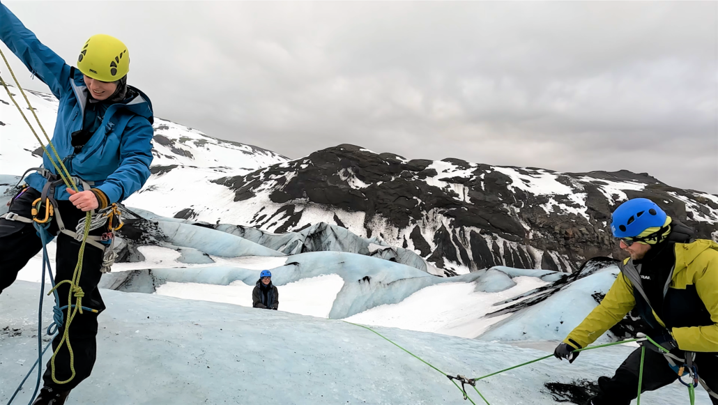 Glaciologerne fra GEUS skal jævnligt træne gletsjersikkerhed for at være forberedt, når de skal lave feltarbejde på Grønlands indlandsis hver sommer. For eksempel hvad man gør, hvis man falder i en gletsjerspalte. I foråret 2022 tog de til Island, og Geoviden tog med.