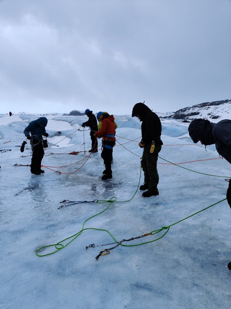 Det er ikke noget, man kan læse sig til. Derfor har GEUS et krav om, at alle, der skal bevæge sig rundt i  områder af Indlandsisen med risiko for spalter, skal gennemgå en række praktiske sikkerhedskurser som forberedelse. Blandt andet gletsjersikkerheds-kurset, som foregår over tre dage på den islandske gletsjer Sólheimajokull. Det er både nemmere og billigere at komme til Island end til Grønland, og gletsjerspalter er nu engang gletsjerspalter.