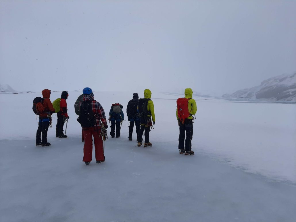 Da vi ankommer ved gletsjeren op ad formiddagen på den første dag har entusiasmen undervejs været lidt udfordret af regn, slud og blæst, der hamrer ildevarslende mod bilruderne. Dog ikke hos Jón Andrésson fra guidefirmaet Asgard Beyond, som står for kurset.