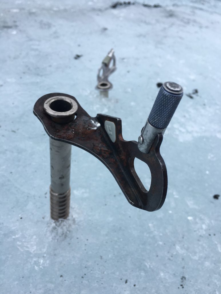”How you like them apples?!” siger Mike Reid og slår ud med armene efter sin rutinerede demonstration af mekanismen. Et såkaldt is-anker med bæreevne på over 1000 kilo. Vores tur.