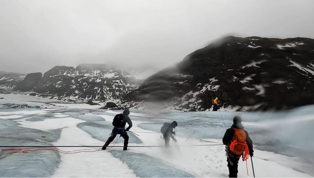 “Hvordan fanden forbereder man sig på det!!??” udbryder en kursusdeltager chokeret på den sneklædte, islandske skråning, da hendes baglæns tumlen ned ad bakken med sne, arme og ben i alle retninger endelig er bragt til standsning. Et fald induceret med fuldt overlæg cirka 30 sekunder forinden af hendes rebmakker i en simulation af at være et sammenbundet tomandshold på Indlandsisen, hvoraf den ene falder i en gletsjerspalte og hiver kollegaen i den anden ende af rebet med.
